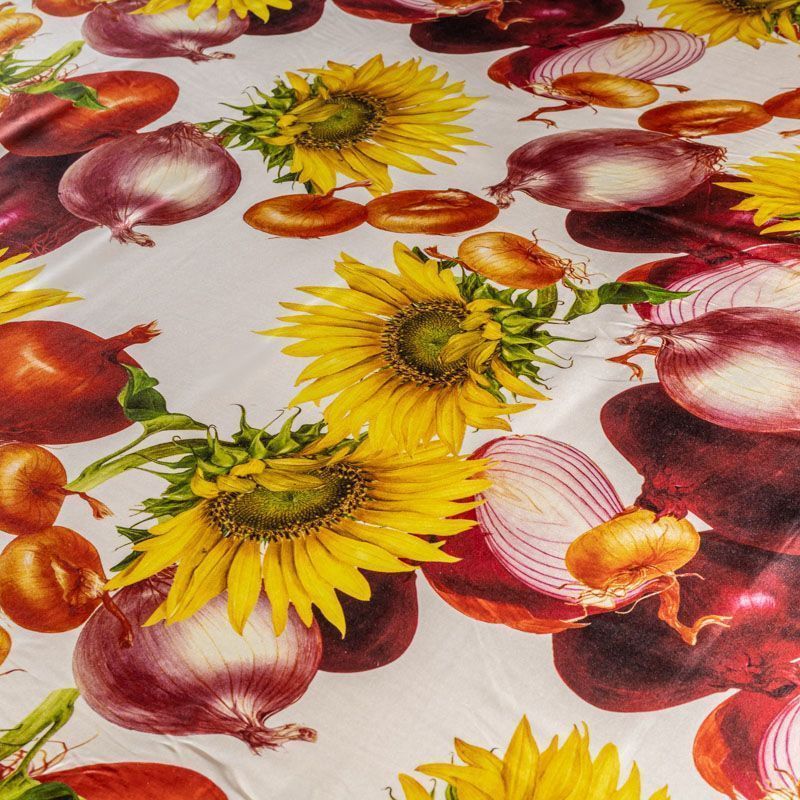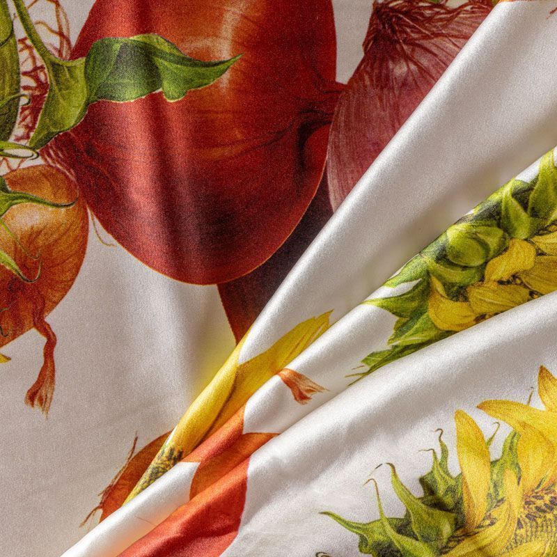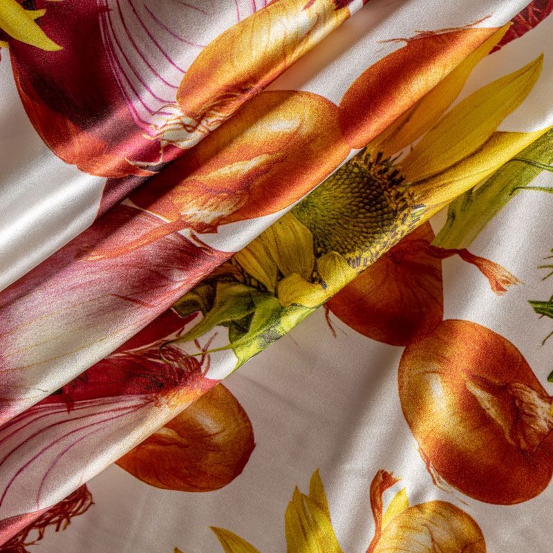 Итальянский атласный шелк с не тривиальным реалистичным растительным принтом. Ткань средней плотности, не просвечивает, струится, хорошо драпируется. Поверхность глядкая, имеет благородный сатиновый блеск. Подойдет смелых образов: летних платьев и сарафанов, как летящих фасонов, так и скроенных по косой, накидок, юбок, блузок, костюмов, широких брюк, домашней одежды.