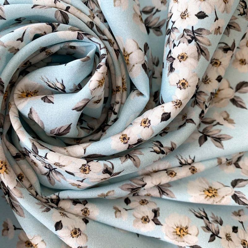 Шелк натуральный К32-151 нежно-голубой принтованный в Петрозаводске