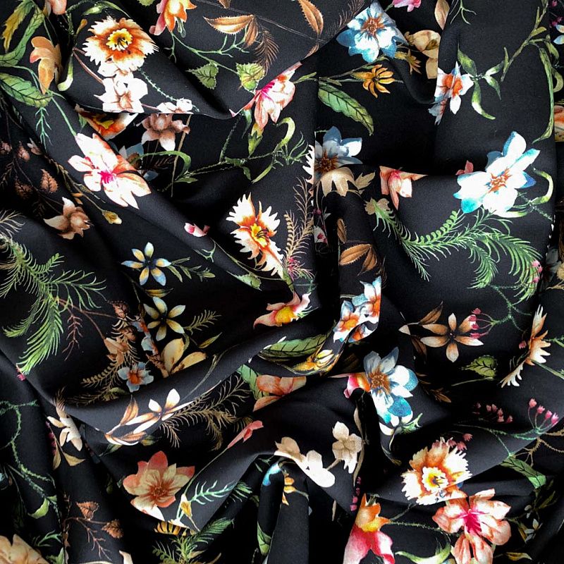 Шелк натуральный К32-158 черный принтованный в Петрозаводске