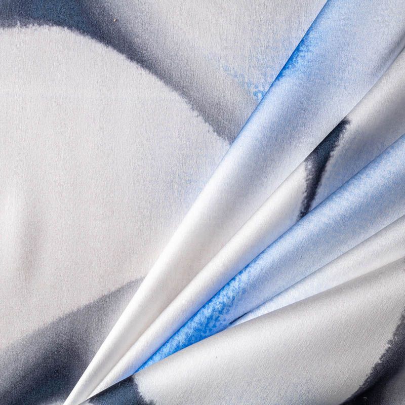Итальянский атласный шелк с красивым акварельным цветочным принтом. Ткань средней плотности, не просвечивает, струится, хорошо драпируется, тянется за счет эластана в составе. Поверхность глядкая, имеет благородный сатиновый блеск. Подойдет для летних платьев и сарафанов, как летящих фасонов, так и скроенных по косой, накидок, юбок, блузок, костюмов, широких брюк, домашней одежды.