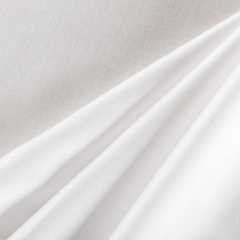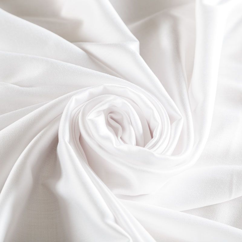 Плательно-блузочный штапель с добавлением шелка в белом оттенке. Мягкий, нежный, пластичный, шелковистый на ощупь, хорошо драпируется, практичный, тянется за счет эластана в составе. Особенно актуален летом, он очень легкий, обволакивающий прохладой. Идеален для пошива летней детской одежды, сарафанов, платьев, юбок, блузок, домашней одежды: халатов, ночной пижамы.