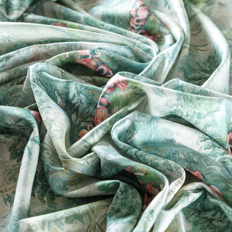 Итальянский плательно-блузочный штапель с добавлением шелка зеленого оттенка с акварельным принтом. Мягкий, нежный, пластичный, шелковистый на ощупь, хорошо драпируется, практичный. Особенно актуален летом, он очень легкий, обволакивающий прохладой. Идеален для пошива летней детской одежды, сарафанов, платьев, юбок, блузок, домашней одежды: халатов, ночной пижамы.