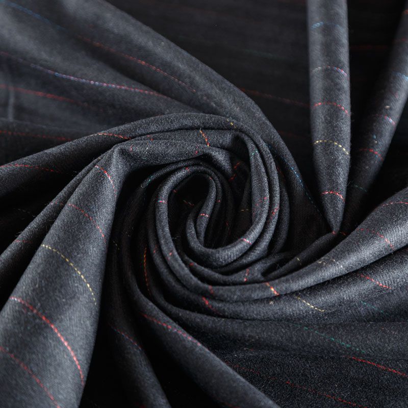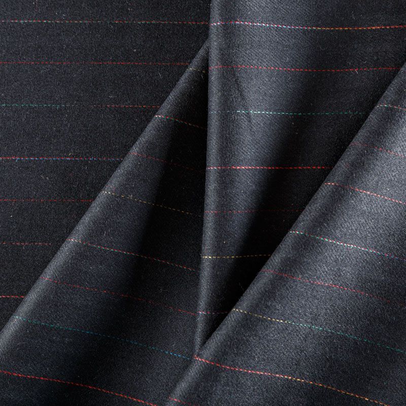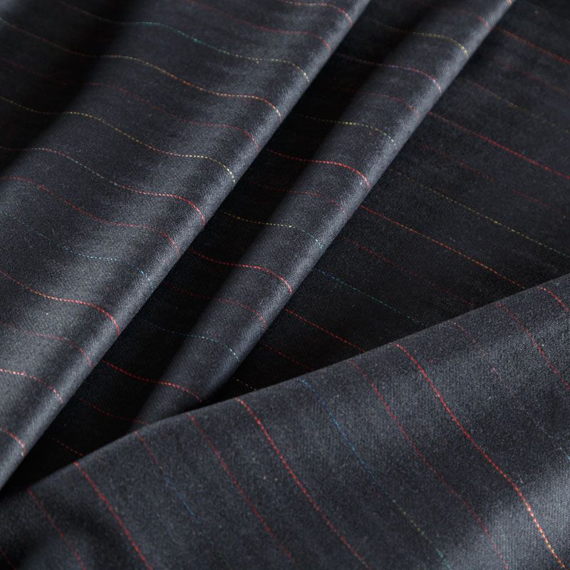 Итальянская костюмно-плательная шерсть в элегантную тонкую цветную полоску на темно-сером фоне. Ткань очень хорошо драпируется, тянется за счет эластана в составе, пластичная, не сухая, мягкая, теплая и уютная. Шерсть не колется, в носке очень комфортная. Подойдет для пошива стильного платья прямого или расклешенного силуэта для сезона осень-зима, юбок, костюмов, жакетов, школьной формы.