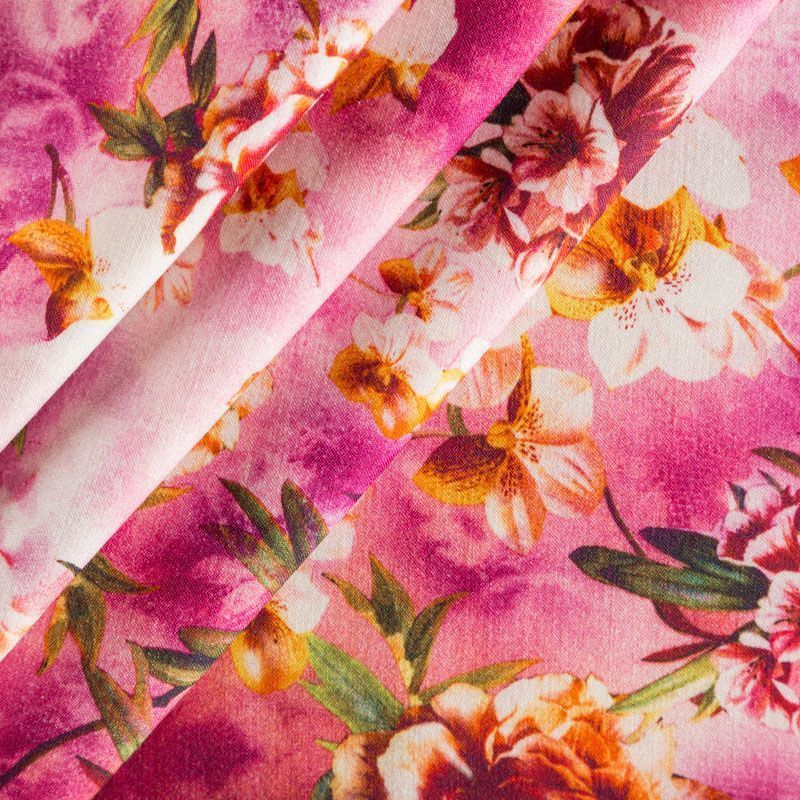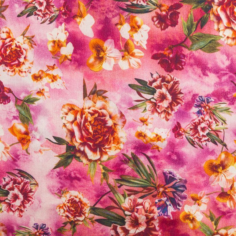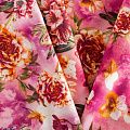 Итальянская плательная шерсть в розовых оттенках с ярким цветочным принтом. Ткань тонкая, мягкая и пластичная, отлично драпируется, тянется за счет эластана в составе. Поверхность матовая с полотняным плетением нитей. Прекрасно подойдет для создания осенних платьев, теплых туник, юбок, кофточек, а также аксессуаров, таких как палантины, шарфы, платки.