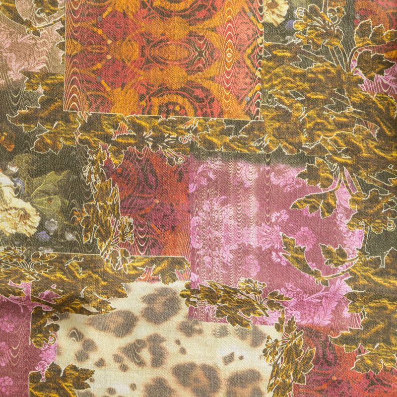 Итальянская плательная шерсть оттенка хаки со сложным принтом, сочетающим в себе флористическую и анималистическую темы. Ткань тонкая, мягкая и пластичная, отлично драпируется. Поверхность матовая с твиловым плетением нитей. Прекрасно подойдет для создания осенних платьев, теплых туник, юбок, кофточек, а также аксессуаров, таких как палантины, шарфы, платки.