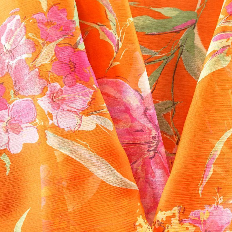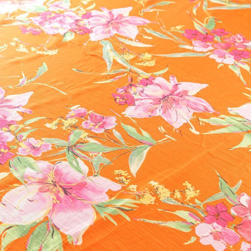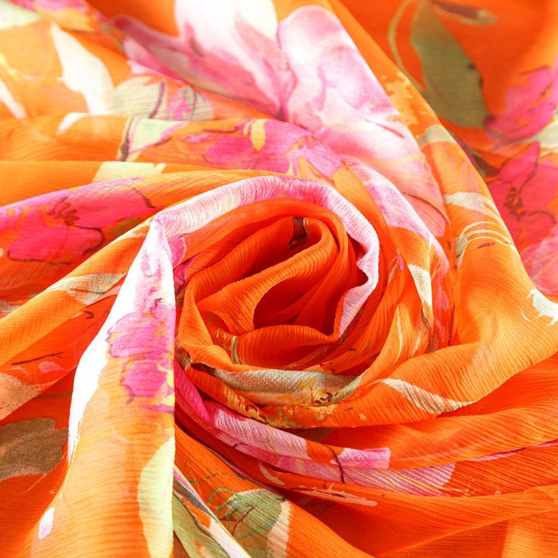 Шифон натуральный К02-426 апельсиновый принтованный в Петрозаводске