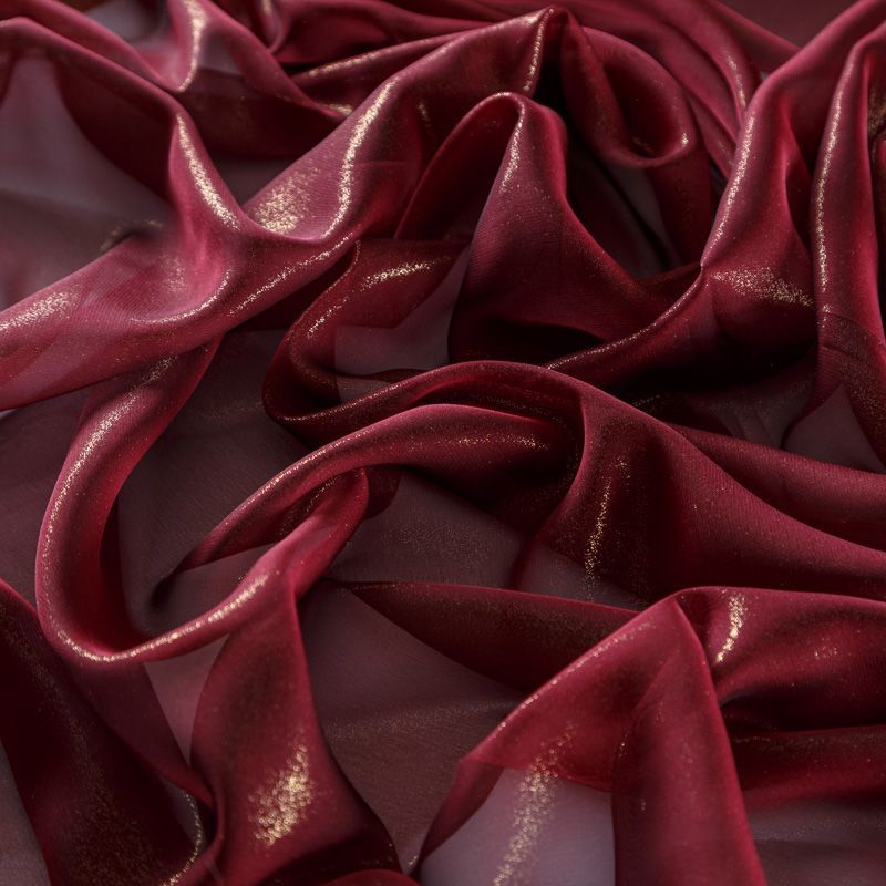 Тонкая, полупрозрачная, легкая ткань, лицевая сторона которой покрыта блестящим напылением. Шифон прекрасно драпируется, струящийся и воздушный. На ощупь шифон очень мягкий и приятный, поверхность слегка шероховатая. Подойдет для пошива тончайших воздушных блуз, изумительных вечерних и летних платьев в пол, коротких коктейльных платьев, топов, блузок, туник и элегантных шарфов.