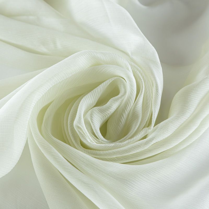 Воздушная шелковая жатая ткань, легкая, тонкая, полупрозрачная. На ощупь шифон-жатка очень мягкий и приятный, не тянется. Подойдет для пошива тончайших воздушных блуз, изумительных вечерних и летних платьев в пол, коротких коктейльных платьев, топов, блузок, туник и элегантных шарфов.
