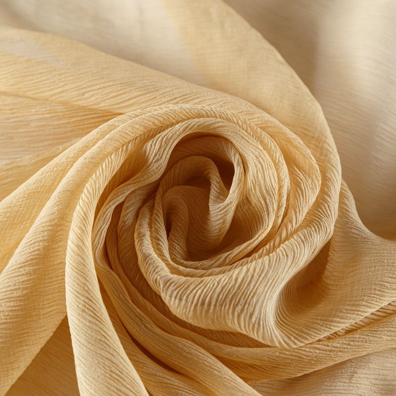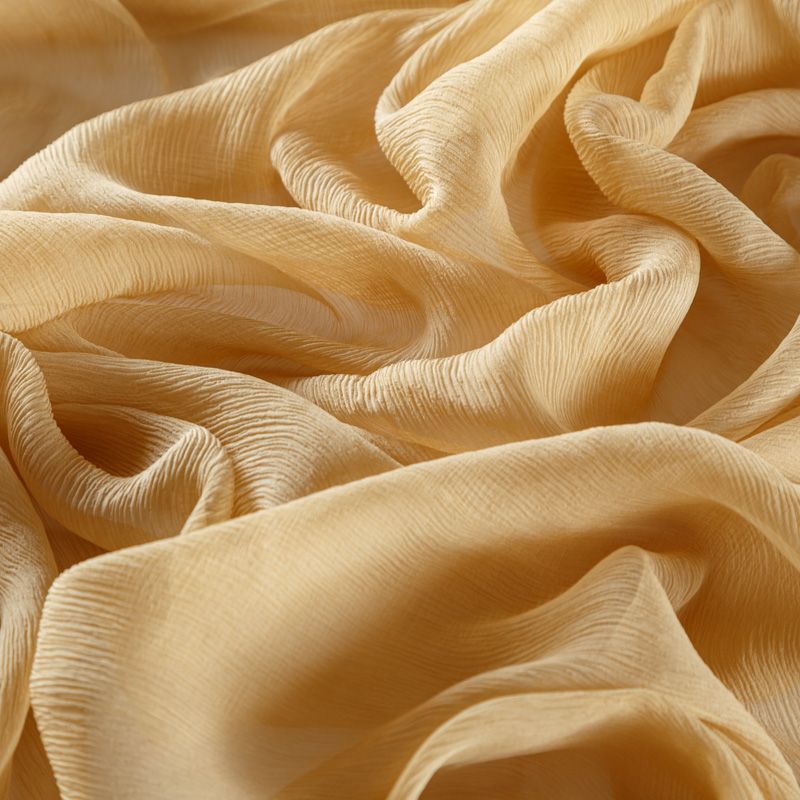 Воздушная шелковая жатая ткань, легкая, тонкая, полупрозрачная. На ощупь шифон-жатка очень мягкий и приятный, не тянется. Подойдет для пошива тончайших воздушных блуз, изумительных вечерних и летних платьев в пол, коротких коктейльных платьев, топов, блузок, туник и элегантных шарфов.