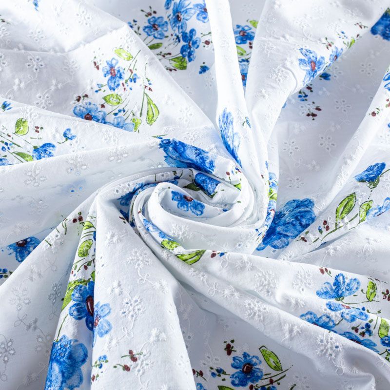Тренд и мастхэв этого лета - итальянское шитье-ришелье на хлопковой основе. На белом фоне яркий принт в виде небольших цветочных букетов. Вышивка расположена по всему полотну. Ткань мягкая, чуть держит форму, приятная на ощупь, слегка просвечивает. Идеально подойдет для пошива рубашки, блузы, топа в воланами, туники, платья, сарафана, юбки.