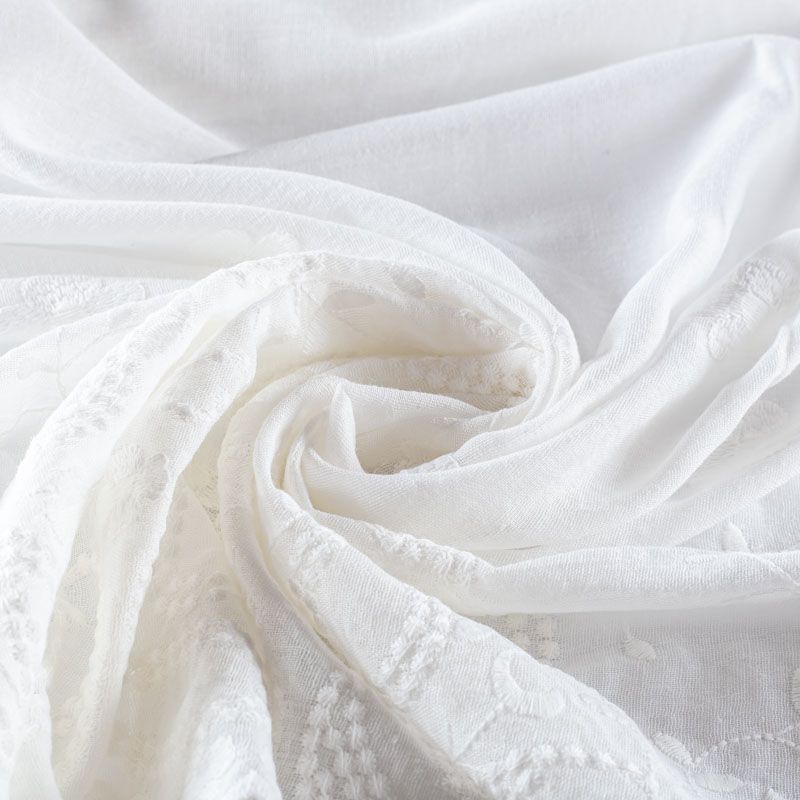 Мягкий и нежный итальянский батист белоснежного оттенка с цветочной вышивкой. Узор выполнен путём машинной вышивки нитками в цвет ткани и расположен преимущественно вдоль кромок. Набирается объемом. Фактура ткани неоднородная, имеет тенденцию к сминаемости, просвечивает, не тянется, приятная на ощупь. Идеально подходит для создания летних платьев, сарафанов, юбок, блузок и топов.