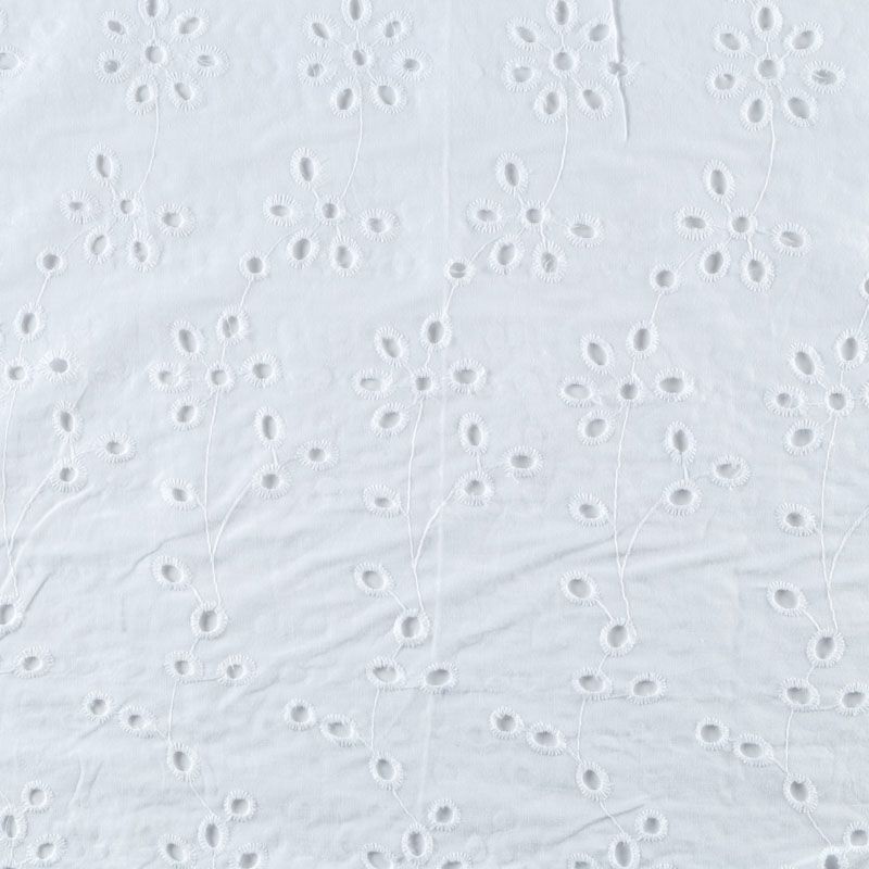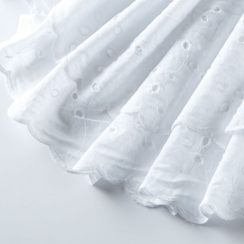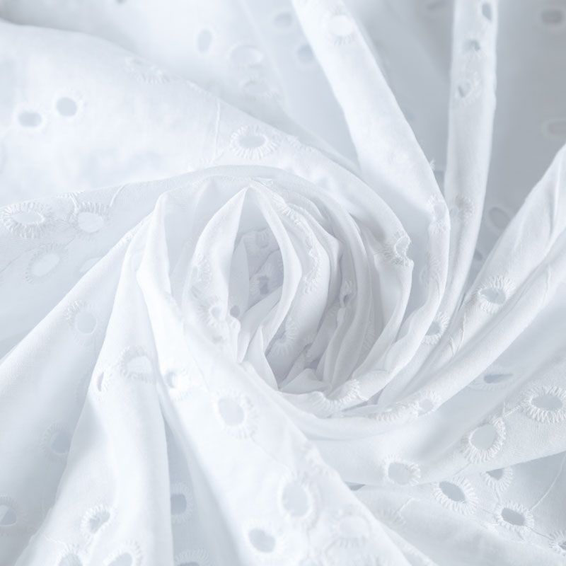 Итальянское шитье на белоснежной хлопковой основе с растительной элегантной вышивкой,  расположеннной по всему полотну. Ткань мягкая, легкая, пластичная, приятная на ощупь, просвечивает, потребуется подклад. Обе кромки ткани оформлены фигурными фестонами. Идеально подойдет для пошива рубашки, блузы, топа в воланами, туники, платья, сарафана, юбки, шорт.