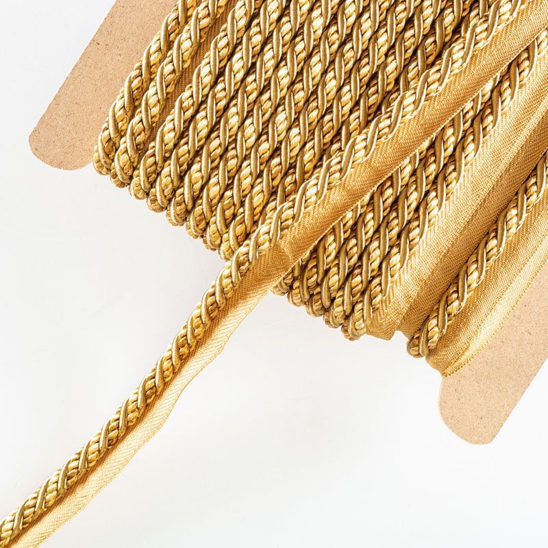 Декоративный витой круглый шнур, снабженый тесьмой для втачивания в стыковочный шов изделия. Применяется для отделки мягкой мебели, чехлов, декорирования домашнего текстиля, штор, покрывал, подушек. Позволяет изделию сохранять форму, образуя каркас. Диаметр шнура - 8 мм. Общая ширина шнура с тесьмой - 2 см.