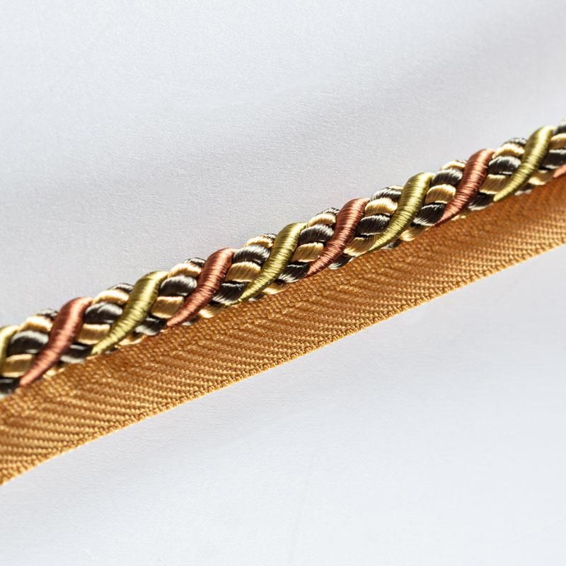 Декоративный витой круглый шнур, снабженый тесьмой для втачивания в стыковочный шов изделия. Применяется для отделки мягкой мебели, чехлов, декорирования домашнего текстиля, штор, покрывал, подушек. Позволяет изделию сохранять форму, образуя каркас. Диаметр шнура - 8 мм. Общая ширина шнура с тесьмой - 2 см.