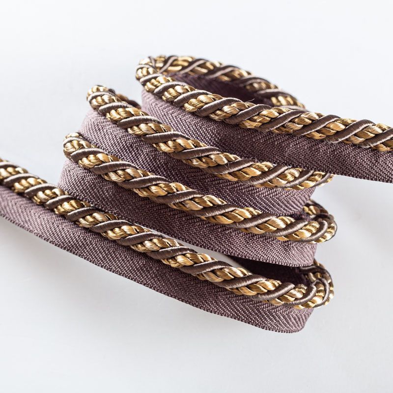 Декоративный витой круглый шнур, снабженый тесьмой для втачивания в стыковочный шов изделия. Применяется для отделки мягкой мебели, чехлов, декорирования домашнего текстиля, штор, покрывал, подушек. Позволяет изделию сохранять форму, образуя каркас. Диаметр шнура - 8 мм. Общая ширина шнура с тесьмой - 2 см.