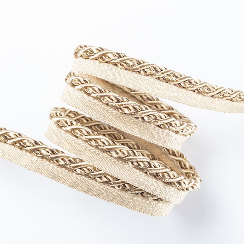 Декоративный витой круглый шнур, снабженый тесьмой для втачивания в стыковочный шов изделия. Применяется для отделки мягкой мебели, чехлов, декорирования домашнего текстиля, штор, покрывал, подушек. Позволяет изделию сохранять форму, образуя каркас. Диаметр шнура - 8 мм. Общая ширина шнура с тесьмой - 2 см.