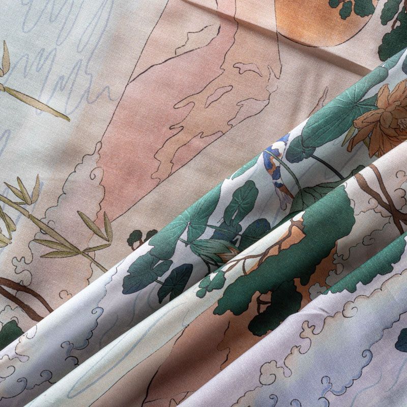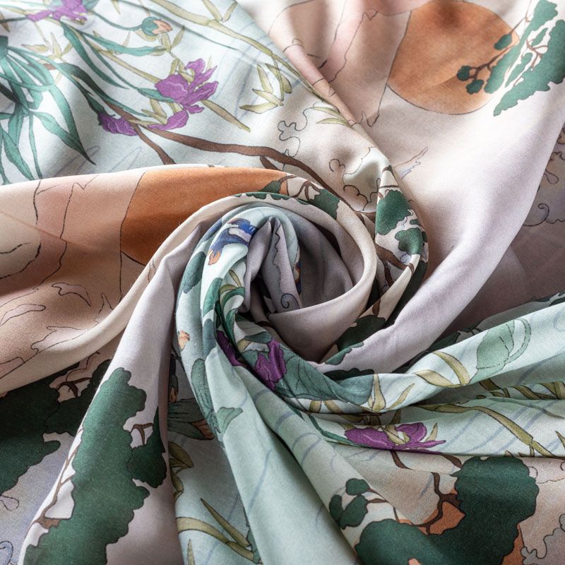 Итальянский штапель-купон с речным пейзажем в бежево-зеленых тонах. Ткань очень легкая, приятная на ощупь, нежная, пластичная, хорошо и мягко драпируется, летящая. Подойдет для пошива платья, топа, блузки, рубашки, юбки, летних брюк.