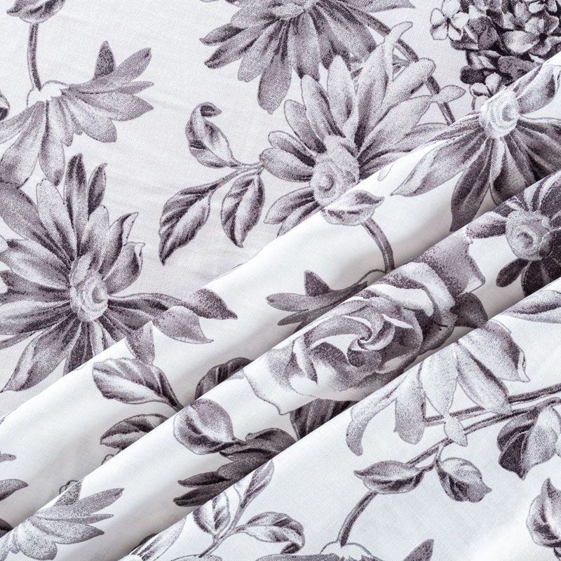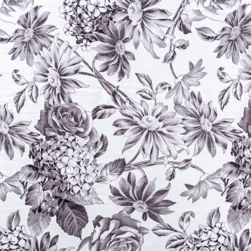 Плательно-блузочный штапель с реалистичным монохромным цветочным принтом на белом фоне. Мягкий, тонкий, нежный, пластичный, приятный на ощупь, хорошо драпируется, практичный. Подойдет для пошива платья, топа, блузки, рубашки, юбки, летних брюк.