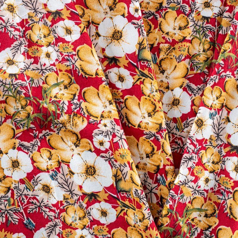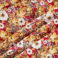 Плательно-блузочный штапель с цветочным принтом в молочно-бежевых оттеннках на бордовом фоне. Мягкий, тонкий, нежный, пластичный, приятный на ощупь, хорошо драпируется, практичный. Подойдет для пошива платья, топа, блузки, рубашки, юбки, летних брюк.