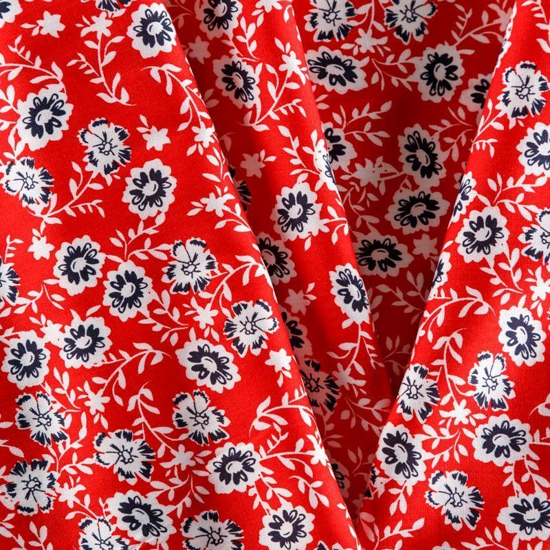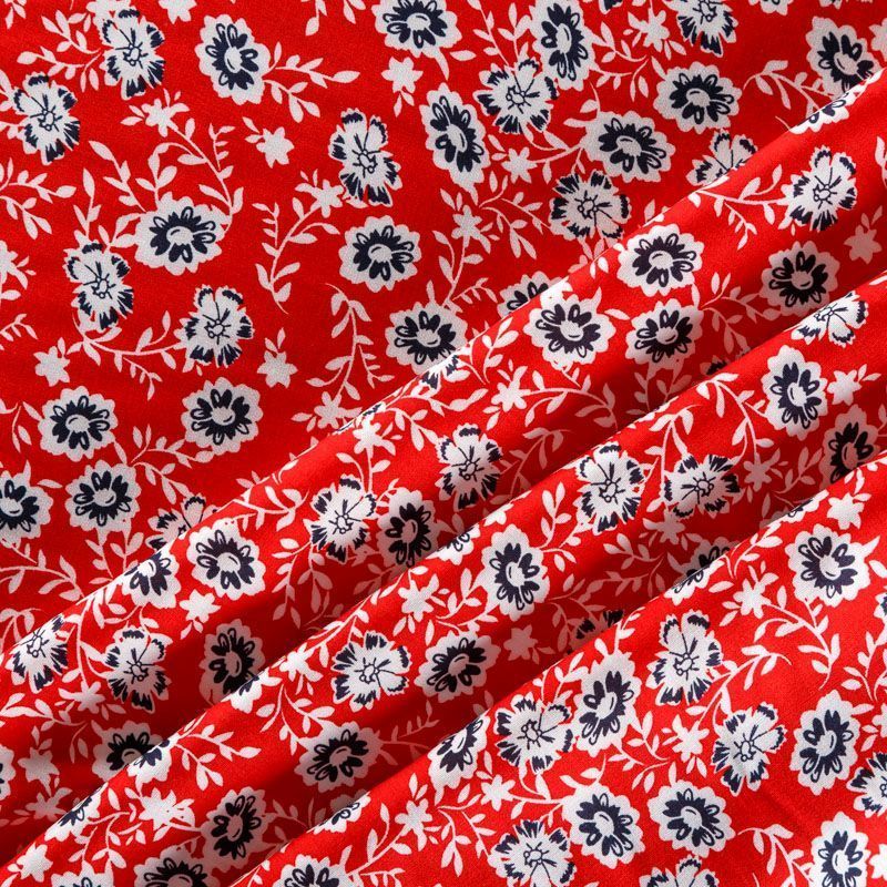 Плательно-блузочный штапель с не крупным цветочным принтом на красном фоне. Мягкий, тонкий, нежный, пластичный, приятный на ощупь, хорошо драпируется, практичный. Подойдет для пошива платья, топа, блузки, рубашки, юбки, летних брюк.
