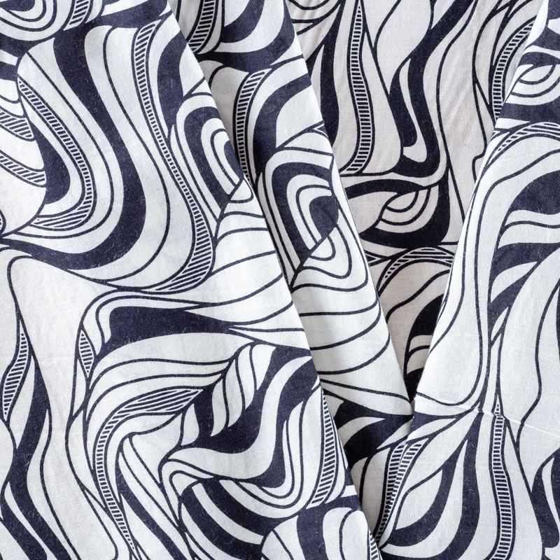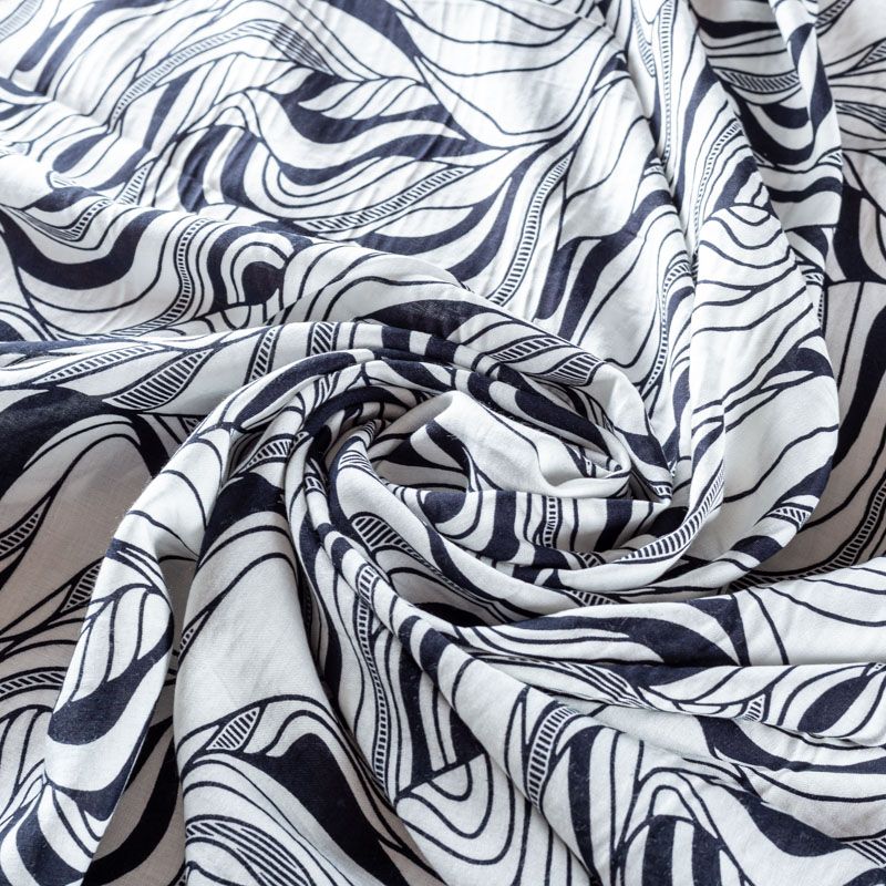 Плательно-блузочный штапель с абстрактным принтом на белом фоне. Мягкий, тонкий, нежный, пластичный, приятный на ощупь, хорошо драпируется, практичный. Подойдет для пошива платья, топа, блузки, рубашки, юбки, летних брюк.