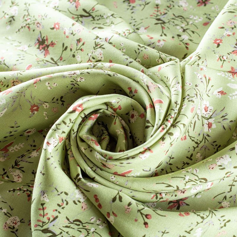 Плательно-блузочный штапель с цветочным принтом на зеленом фоне. Мягкий, тонкий, нежный, пластичный, приятный на ощупь, хорошо драпируется, практичный. Подойдет для пошива платья, топа, блузки, рубашки, юбки, летних брюк.