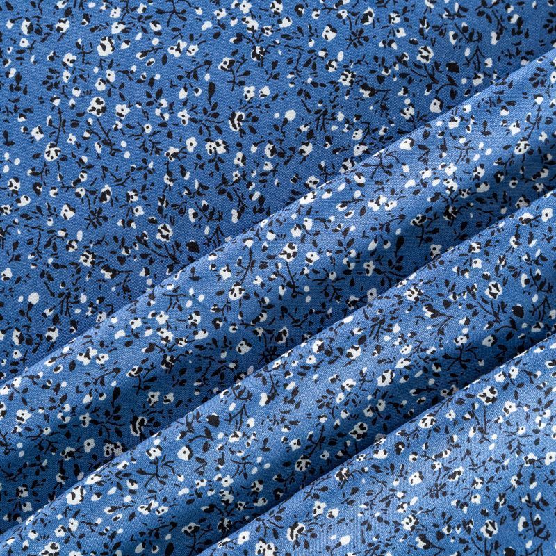 Плательно-блузочный штапель с мелким растительным принтом на сине-голубом фоне. Мягкий, тонкий, нежный, пластичный, приятный на ощупь, хорошо драпируется, практичный. Подойдет для пошива платья, топа, блузки, рубашки, юбки, летних брюк, комбинезона.