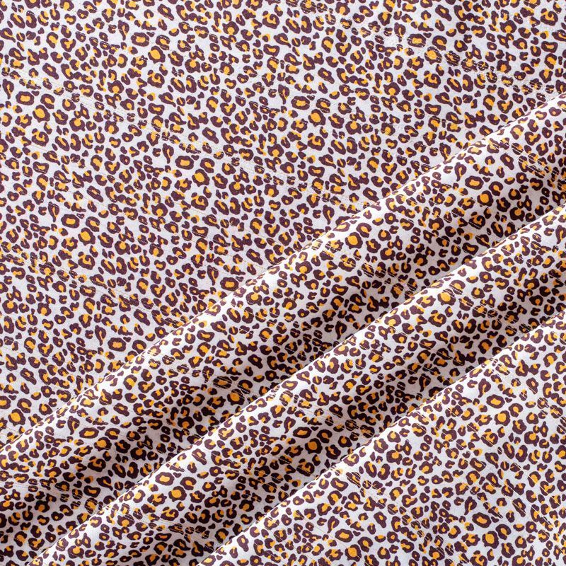 Плательно-блузочный штапель с мелким анималистическим принтом на белом фоне декорирован золотистой люрексовой нитью. Мягкий, тонкий, нежный, пластичный, приятный на ощупь, не много просвечивает, хорошо драпируется, практичный. Подойдет для пошива платья, топа, блузки, рубашки, юбки, летних брюк.