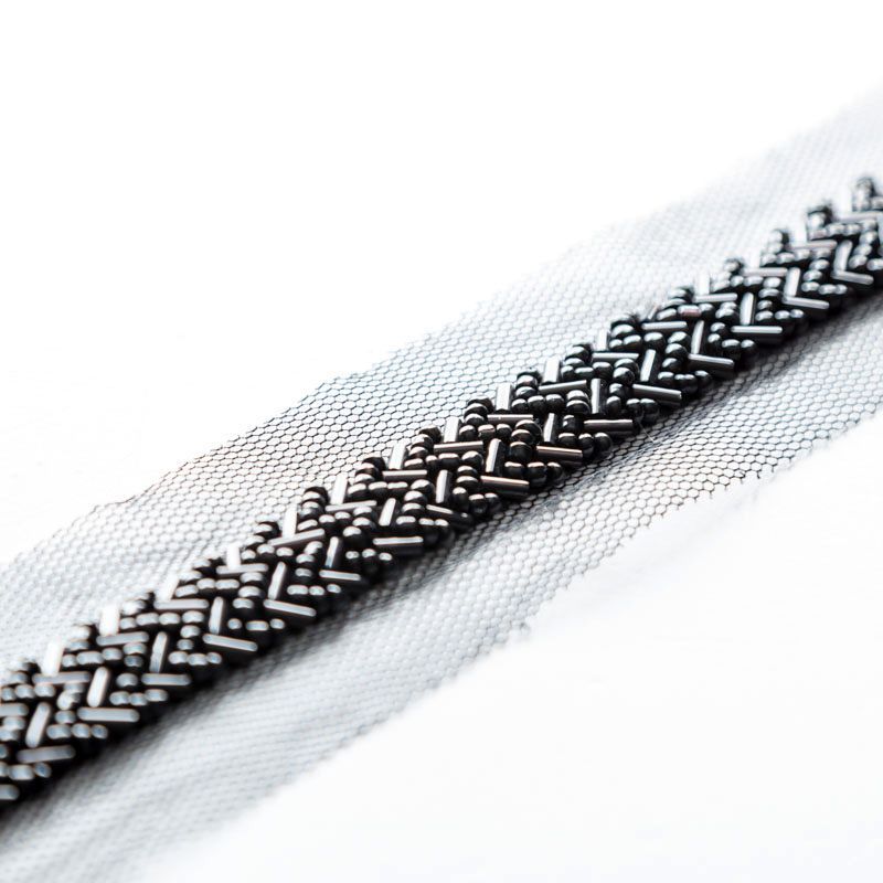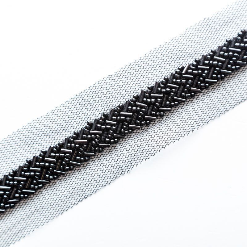 Тесьма декоративная 35 мм со стеклярусом PA0417 черный в Петрозаводске
