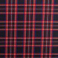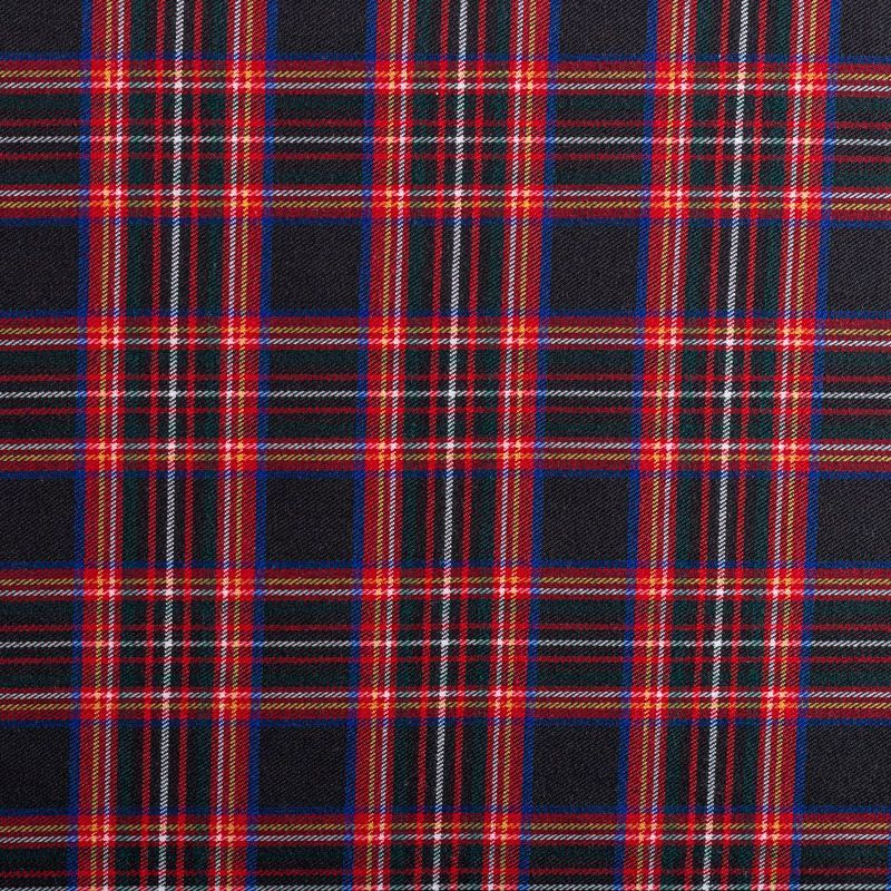 Ткань костюмно-плательной плотности, мягкая и приятная на ощупь, немного тянется за счет эластана в составе, держит форму, хорошо драпируется и образует мягкие складки. Сочетание тонких линий белого, красного, желтого и синего цветов на черном фоне образует сложную красивую клетку. Ткань отлично подойдет на костюмы, юбки, брюки, шорты, платья, жакеты.