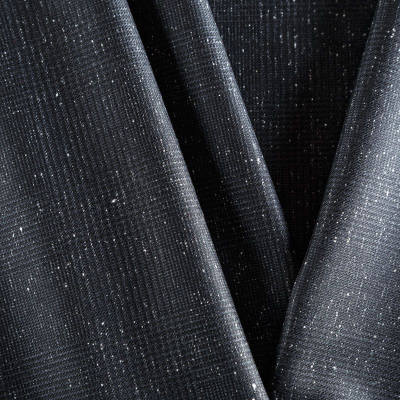 Итальянская костюмная шерсть средней плотности с добавлением шелка черного цвета в клетку гленчек и мелкими белыми вкраплениями. Ткань очень мягкая, пластичная, поверхность гладкая и шелковистая на ощупь. Подойдет для пошива костюма, брюк, юбки, шорт, жакета, платья, сарафана, жилета.