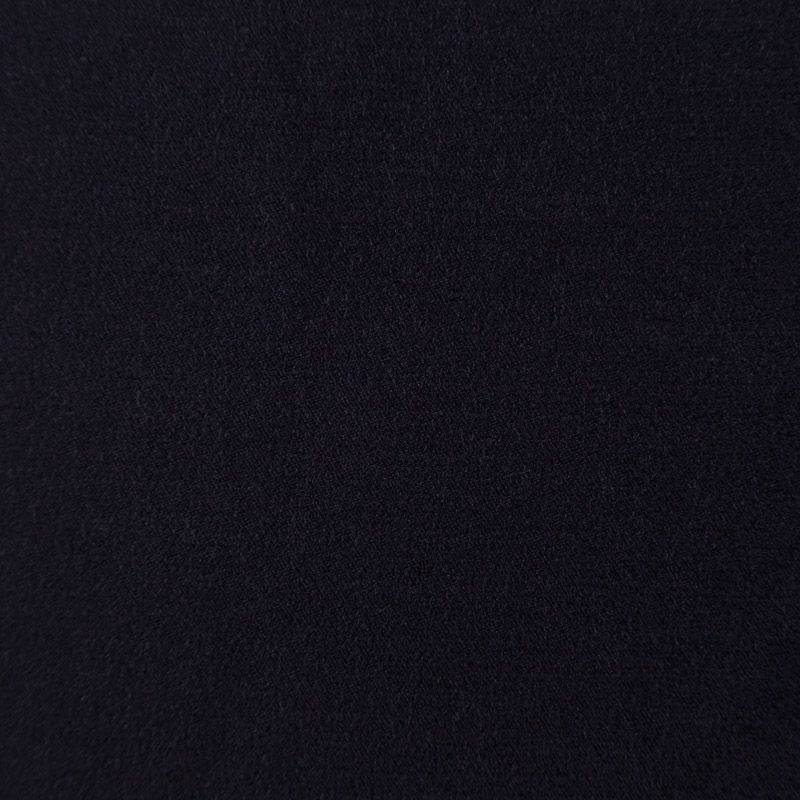 Костюмно-плательная ткань черного цвета, пластичная, очень приятная на ощупь, драпируется в слегка держащие форму складки, поверхность с полотняным переплетением, тянется за счет эластана в составе. Подойдет для всех видов изделий - платьев, сарафанов, модных жакетов, жилетов, брючных и юбочных костюмов, кюлотов, брюк-палаццо, юбок различных фасонов.