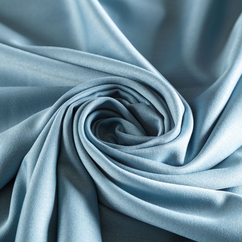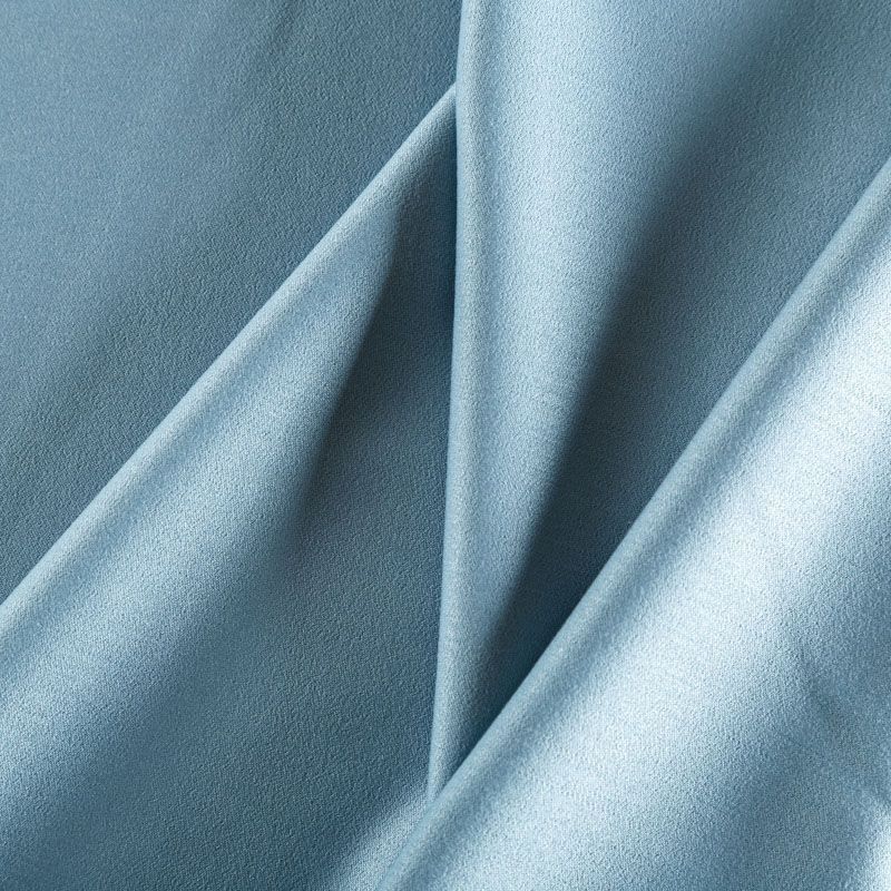 Костюмно-плательная ткань в серо-голубом оттенке. Ткань пластичная, очень приятная на ощупь, драпируется в слегка держащие форму складки, поверхность с полотняным переплетением, тянется за счет эластана в составе. Подойдет для всех видов изделий - платьев, сарафанов, модных жакетов, жилетов, брючных и юбочных костюмов, кюлотов, брюк-палаццо, юбок различных фасонов.