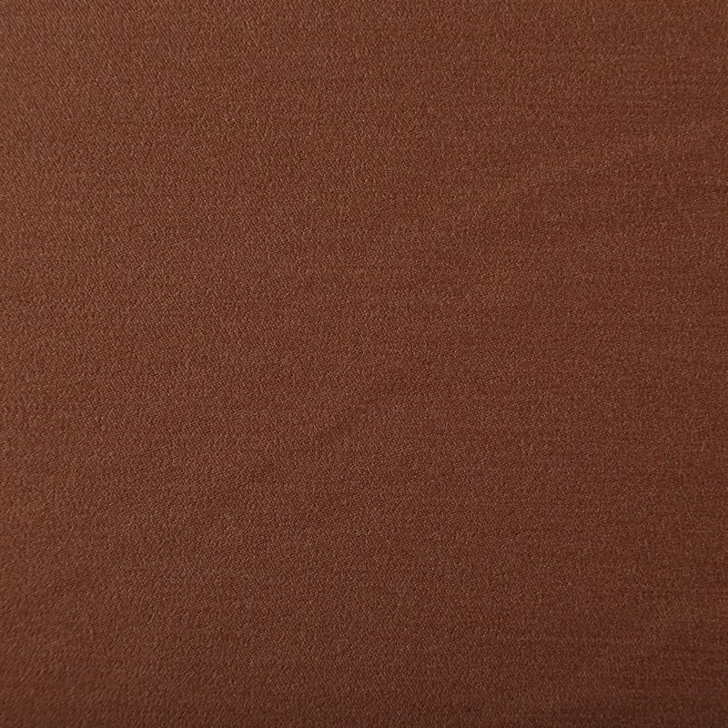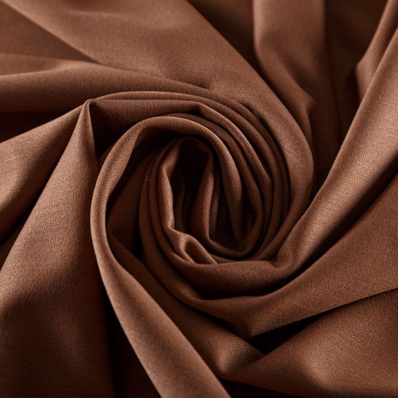 Костюмно-плательная ткань в ореховом оттенке. Ткань пластичная, очень приятная на ощупь, драпируется в слегка держащие форму складки, поверхность с полотняным переплетением, тянется за счет эластана в составе. Подойдет для всех видов изделий - платьев, сарафанов, модных жакетов, жилетов, брючных и юбочных костюмов, кюлотов, брюк-палаццо, юбок различных фасонов.