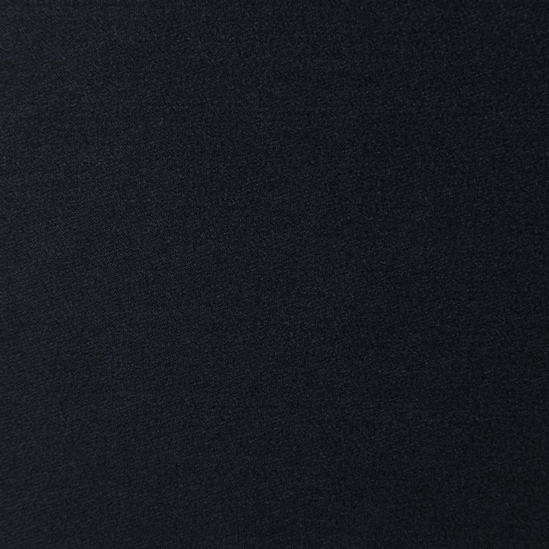 Костюмно-плательная поливискоза премиального качества в черном оттенке. Поверхность ткани гладкая, ровная, шлифованная, на ощупь немного суховата, держит форму, тянется за счет эластана в составе. Подойдет для пошива всех видов изделий - платьев, сарафанов, модных жакетов, жилетов, брючных и юбочных костюмов, кюлотов, брюк-палаццо, юбок различных фасонов.