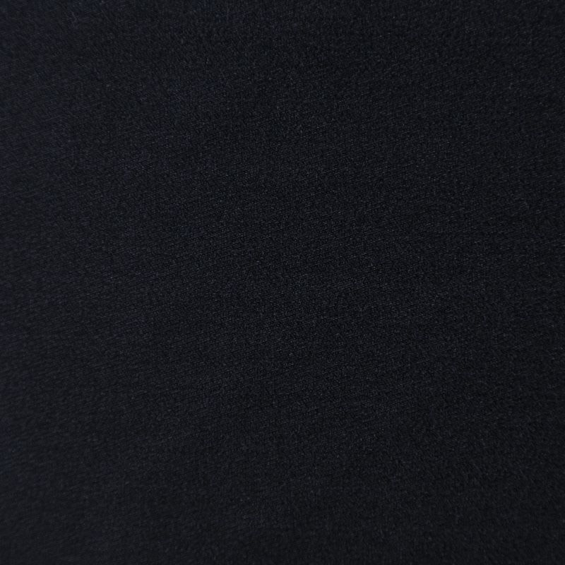 Костюмно-плательная поливискоза премиального качества в черном оттенке. Поверхность ткани гладкая, ровная, шлифованная, на ощупь немного суховата, держит форму, тянется за счет эластана в составе. Подойдет для пошива всех видов изделий - платьев, сарафанов, модных жакетов, жилетов, брючных и юбочных костюмов, кюлотов, брюк-палаццо, юбок различных фасонов.