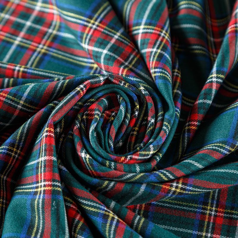 Плотная, но мягкая и приятная на ощупь костюмно-плательная шотландка, немного тянется, формоустойчива, не мнется, хорошо драпируется и образует мягкие складки. Сочетание линий красного, синего, черного и белого цветов образует сложную красивую клетку. Ткань отлично подойдет на костюмы, юбки, брюки, платья, жакеты, для школьной формы.