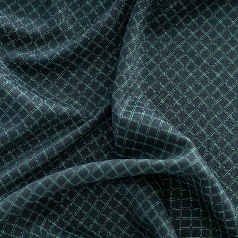 Восхитительная костюмная ткань глубокого темно-синего цвета с мелкими вкраплениями нитки мятного оттенка. Почти не мнется, приятная к телу, прекрасно драпируется, не сухая, пластичная, хорошо тянется. В косом крое ляжет красивыми ниспадающими складками. Идеально подойдет для костюма, брюк, а также юбок и платьев.