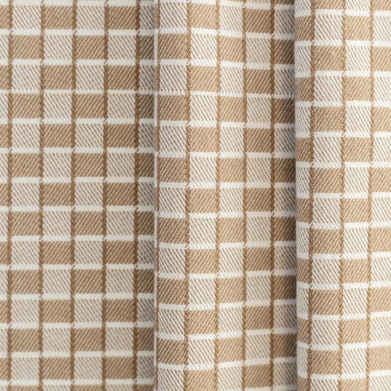 Плотная костюмно-плательная ткань, немного суховатая, но приятная на ощупь, тянется за счет эластана, формоустойчива, не мнется, хорошо драпируется. Мелкая клетка образована за счет расположенных в шахматном порядке квадратиков бежевого и молочного цветов. Ткань отлично подойдет на костюмы, юбки, брюки, платья, жакеты, кардиганы.