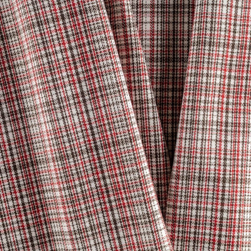 Сочетание линий черного и красного цветов образует сложную мелкую клеточку. Подойдет для пошива платьев, костюма, юбки, жакета любого фасона.