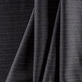 Костюмно-плательная ткань средней плотности, немного суховата, приятная на ощупь. На темно-сером фоне чередующиеся по цвету очень тонкие полоски, направление - вдоль кромки. Прекрасно подойдет для пошива брюк-палацио, жакета, платья по фигуре, сарафана, классического мужского или женского костюма.