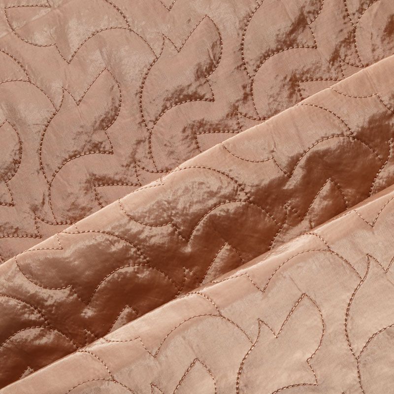 Двухслойная курточная ткань бежевого цвета, простеганная фигурной вышивкой нитками в тон. Нижний слой - синтепон, верхний - плотный матовый полиэстер. Очень мягкая и легкая, пластичная, хорошо драпируется. Прекрасно подойдет для  пошива легких пальто, курток, жилетов, накидок-кейпов, объемных сумок.
