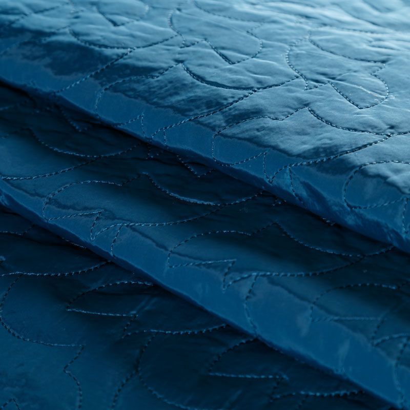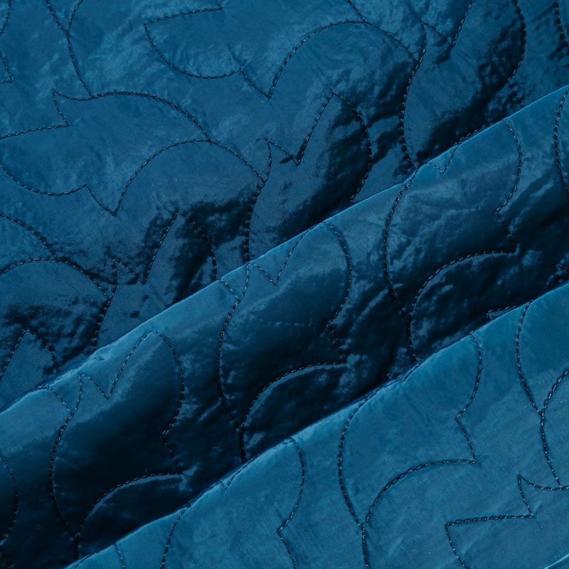 Двухслойная курточная ткань сложного сине-зеленого оттенка, простеганная фигурной вышивкой нитками в тон. Нижний слой - синтепон, верхний - плотный матовый полиэстер. Очень мягкая и легкая, пластичная, хорошо драпируется. Прекрасно подойдет для  пошива легких пальто, курток, жилетов, накидок-кейпов, объемных сумок.