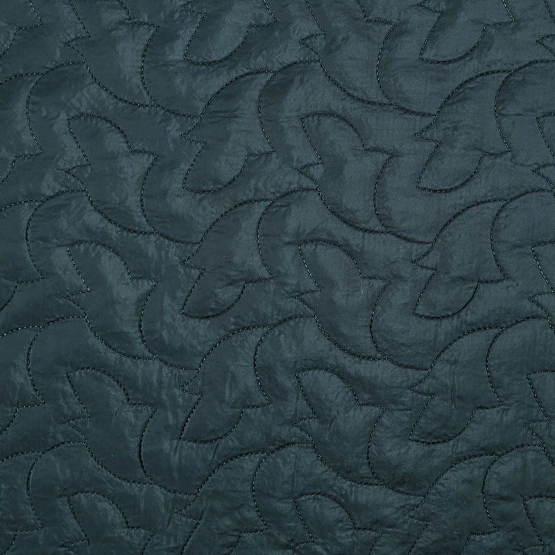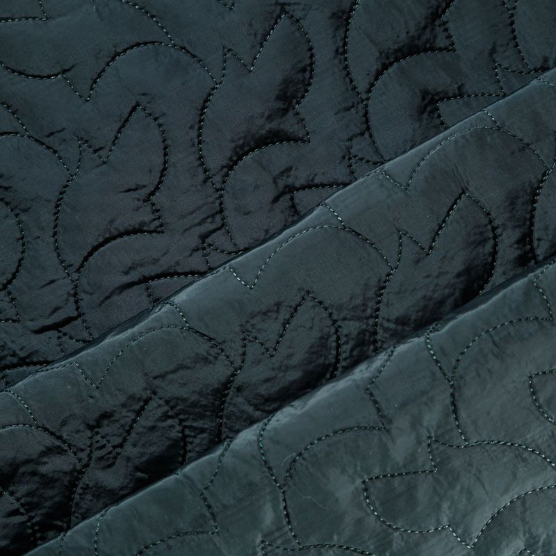 Двухслойная курточная ткань темно-зеленого оттенка, простеганная фигурной вышивкой нитками в тон. Нижний слой - синтепон, верхний - плотный матовый полиэстер. Очень мягкая и легкая, пластичная, хорошо драпируется. Прекрасно подойдет для  пошива легких пальто, курток, жилетов, накидок-кейпов, объемных сумок.