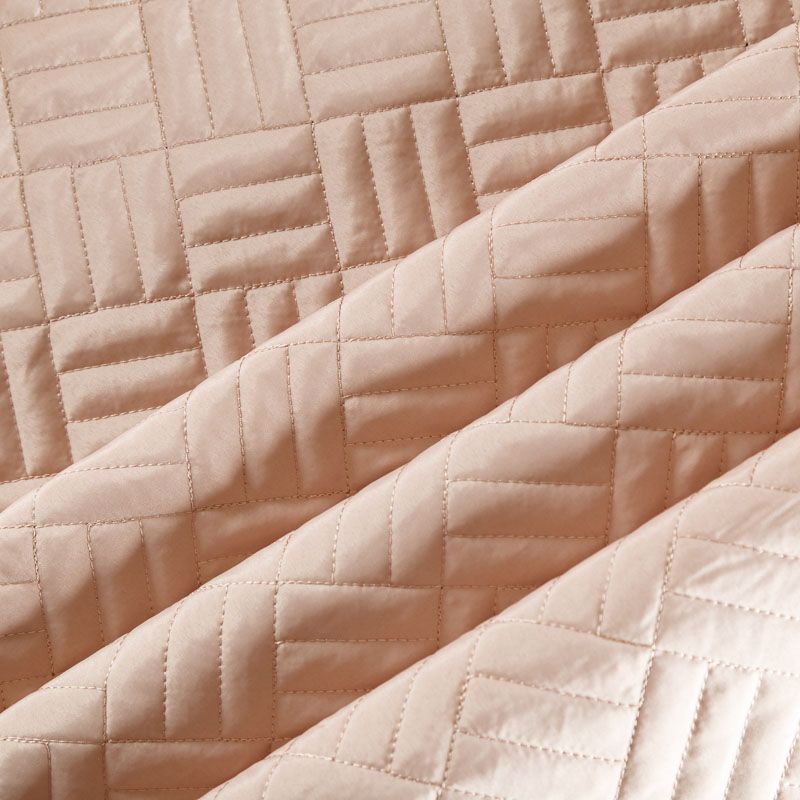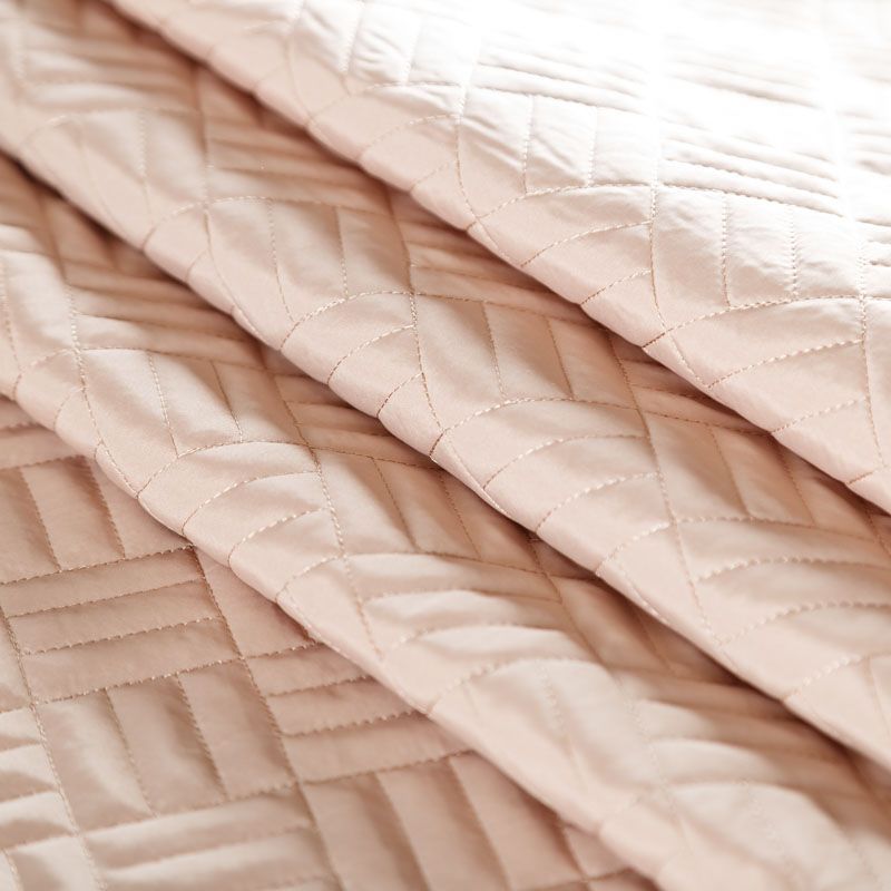 Двухслойная курточная ткань холодного бежевого оттенка, простеганная фигурной вышивкой нитками в тон. Нижний слой - синтепон, верхний - плотный матовый полиэстер. Очень мягкая и легкая, пластичная, хорошо драпируется. Прекрасно подойдет для  пошива легких пальто, курток, жилетов, накидок-кейпов, объемных сумок.