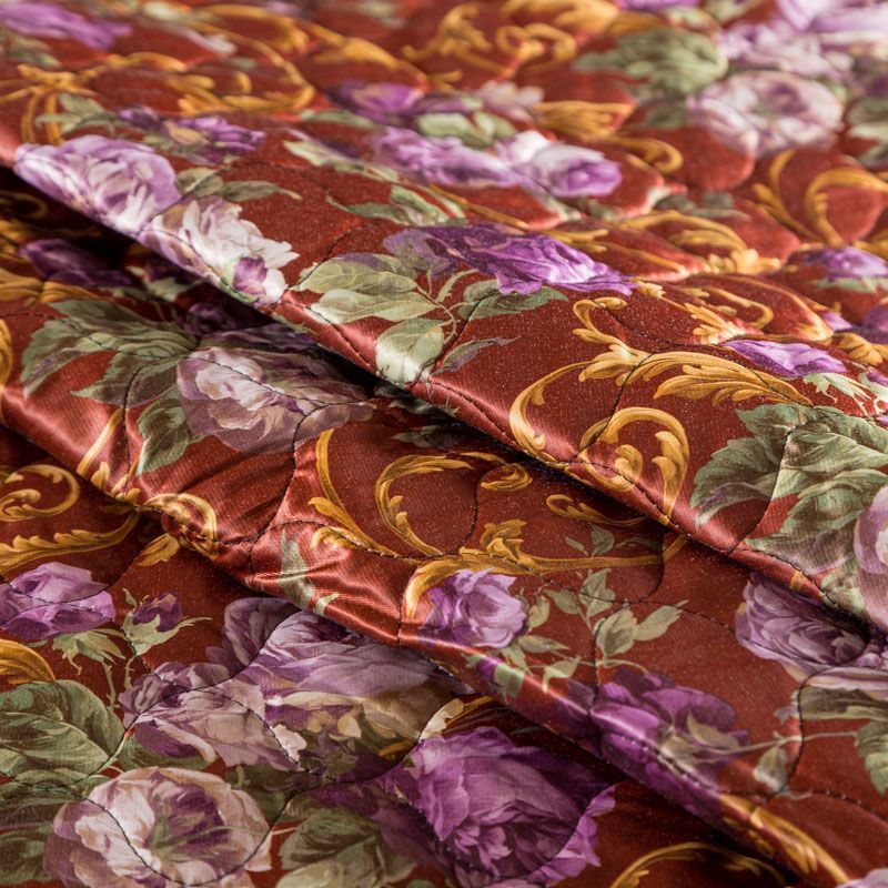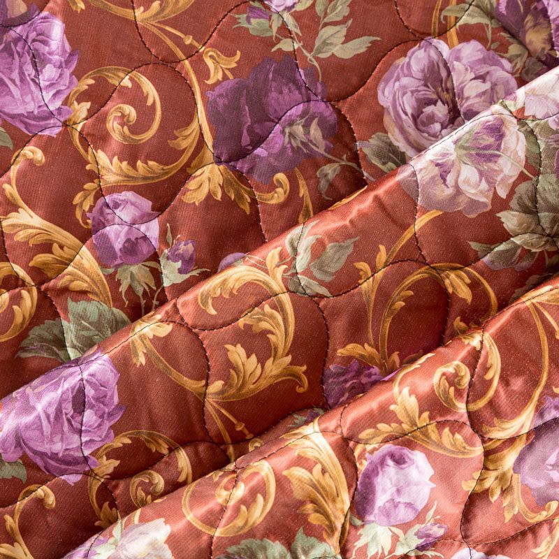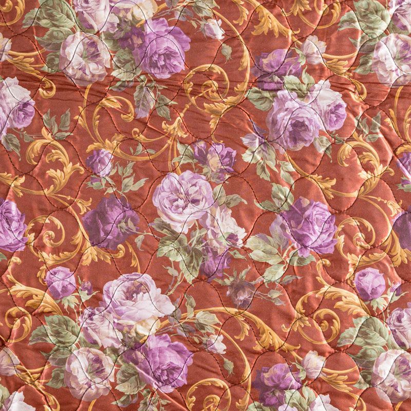 Трехслойная итальянская курточная ткань сыетло-коричневого оттенка с акварельным цветочным принтом, простеганная фигурными линиями. Нижний слой шафранового цвета, заменяет подклад, средний слой - синтепон, верхний слой - красочный полиэстер с легким блеском. Ткань легкая, пластичная, хорошо драпируется. Прекрасно подойдет для пошива объемных пальто, курток, бомберов, жилетов, накидок-кейпов, сумок, одежды для домашних питомцев, туристического снаряжения.