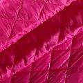 Трехслойная курточная стежка ярко-розового цвета, простеганная не крупными ромбами. Верхний слой - полиэстер, по качеству напоминающий болонь, средний слой - синтепон, нижний слой - подкладочная ткань в тон лицевой. Очень мягкая и легкая, пластичная, хорошо драпируется. Прекрасно подойдет для пошива легких пальто, курток, жилетов, накидок-кейпов, объемных сумок.