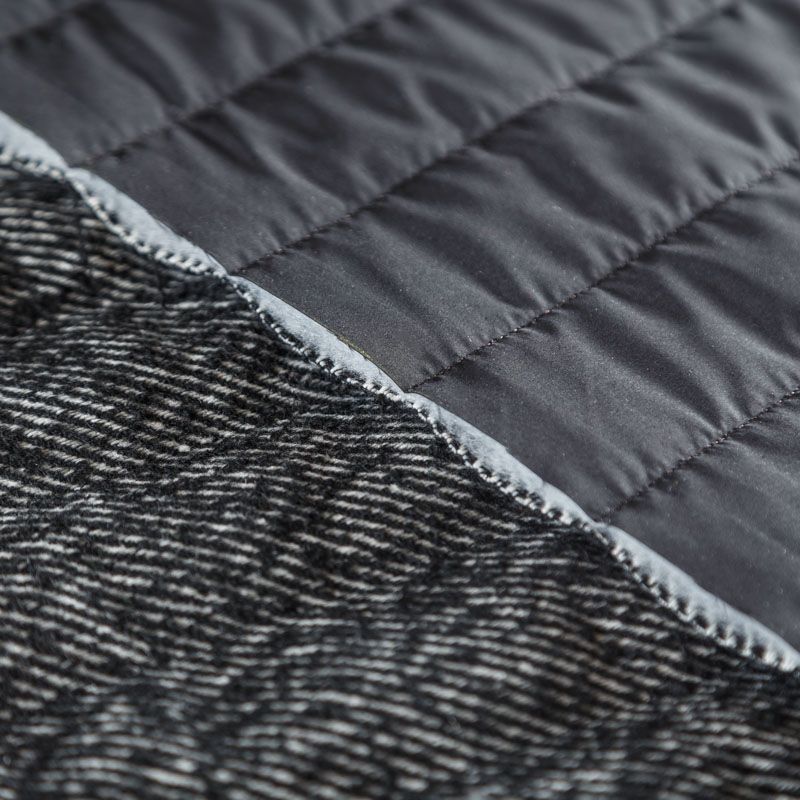 Итальяская трехслойная двухсторонняя курточная ткань, простеганная широкими полосами вдоль кромки. Средний слой - синтепоновый утеплитель, нижний - матовая плотная плащевая ткань, верхний - черно-белый мягкий твид диагонального плетения. Очень мягкая и легкая, пластичная, хорошо драпируется. Прекрасно подойдет для пошива легких пальто, бомберов, парки, курток, жилетов, накидок-кейпов, объемных сумок.