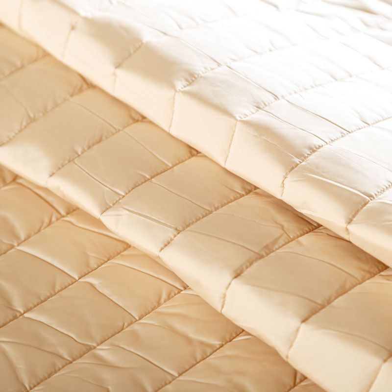 Итальяская трехслойная двухсторонняя курточная ткань бежевого оттенка, простеганная широкими полосами вдоль кромки. Средний слой - воздушный синтепоновый утеплитель, нижний и верхний - матовая плотная плащевая ткань. Очень мягкая и легкая, пластичная, хорошо драпируется. Прекрасно подойдет для  пошива легких пальто, бомберов, парки, курток, жилетов, накидок-кейпов, объемных сумок.