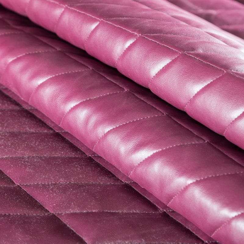 Двухслойная курточная стежка брусничного оттенка, простеганная ромбами среднего размера. Нижний слой - синтепон, верхний - мягкая матовая экокожа. Ткань легкая, пластичная, хорошо держит форму. Прекрасно подойдет для  пошива пальто, курток, жилетов, накидок-кейпов, объемных сумок, одежды для домашних питомцев, туристического снаряжения.